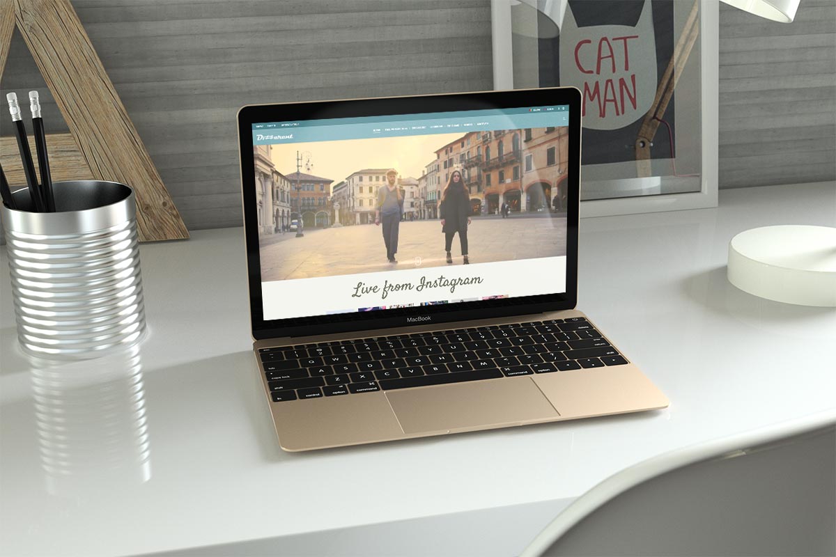 The homepage of Different Apparel opens with a video dedicated to the brand’s latest collection and the feed of their official instagram channel. On the site there are browsable lookbooks, in addition to present and past collections. The possibility of finding the nearest stores and the translation into a second language has also been implemented.