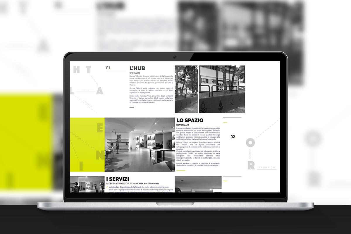 Based on the graphics and photographic material provided by DAAMSTUDIO, the landing page of Hortus Talenti was born with the intent to launch this Hub, and to make all the necessary information available through any type of device; not sacrificing the graphic aspect but rather making available to the final user only the data of real interest.